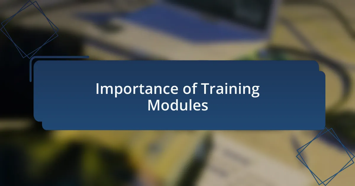 Training modules play a crucial role in laying the foundation for effective cybercrime prevention. From my experience, a well-structured training session not only imparts essential knowledge but also fosters a sense of vigilance among participants. Have you ever walked out of a training feeling more aware and empowered? That’s exactly what these modules can do—they can transform passive participants into proactive defenders.